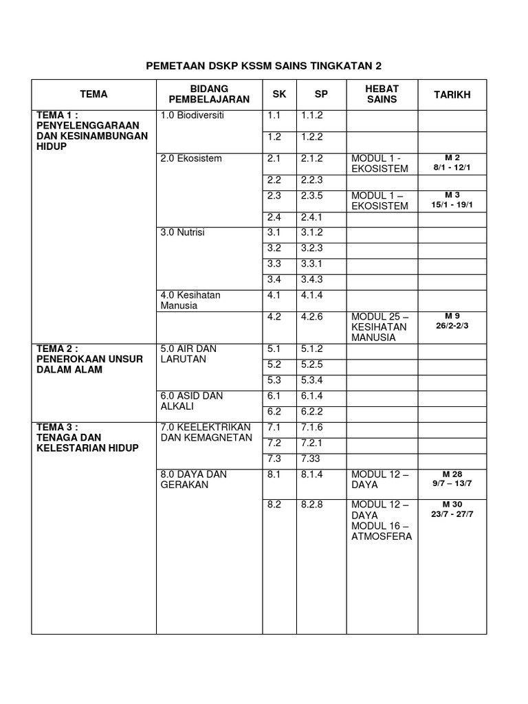 Kumpulan Dskp Sains Tingkatan 2 Yang Dapat Di Cetak Dengan Mudah Pekeliling Terbaru Kerajaan